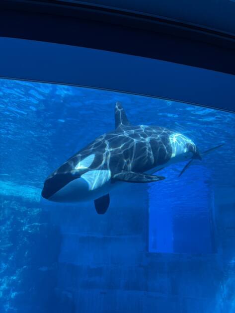 です!!2頭のシャチが飼育されており大きな水槽で泳いでる所を見ることができましたヽ(^o^)