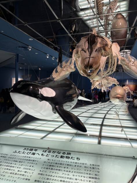 他には、博物館の様なクジラや、シャチ、イルカの説明や地球温暖化が進むにつれ生物がどうなっていくかなど学べる場所でもありました!!
