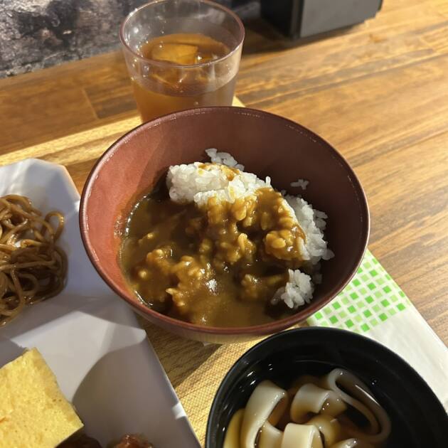 また朝食はビュッフェ形式で、冷たいきしめんであったり、照り焼きハンバーグなどがありました。