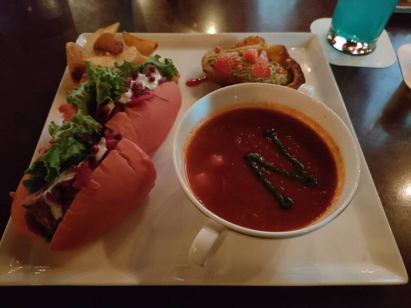 今日行ったレストランにも明かりがついていました。バラが光っています🌹✨