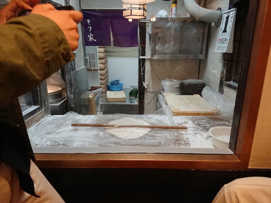 並んでいる所からうどんを作る場所を見れましたよ。