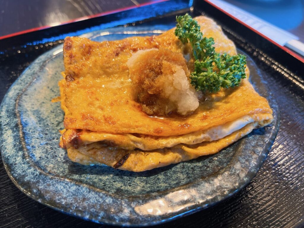 たまごやきは醤油味で、香ばしくて美味しいです!