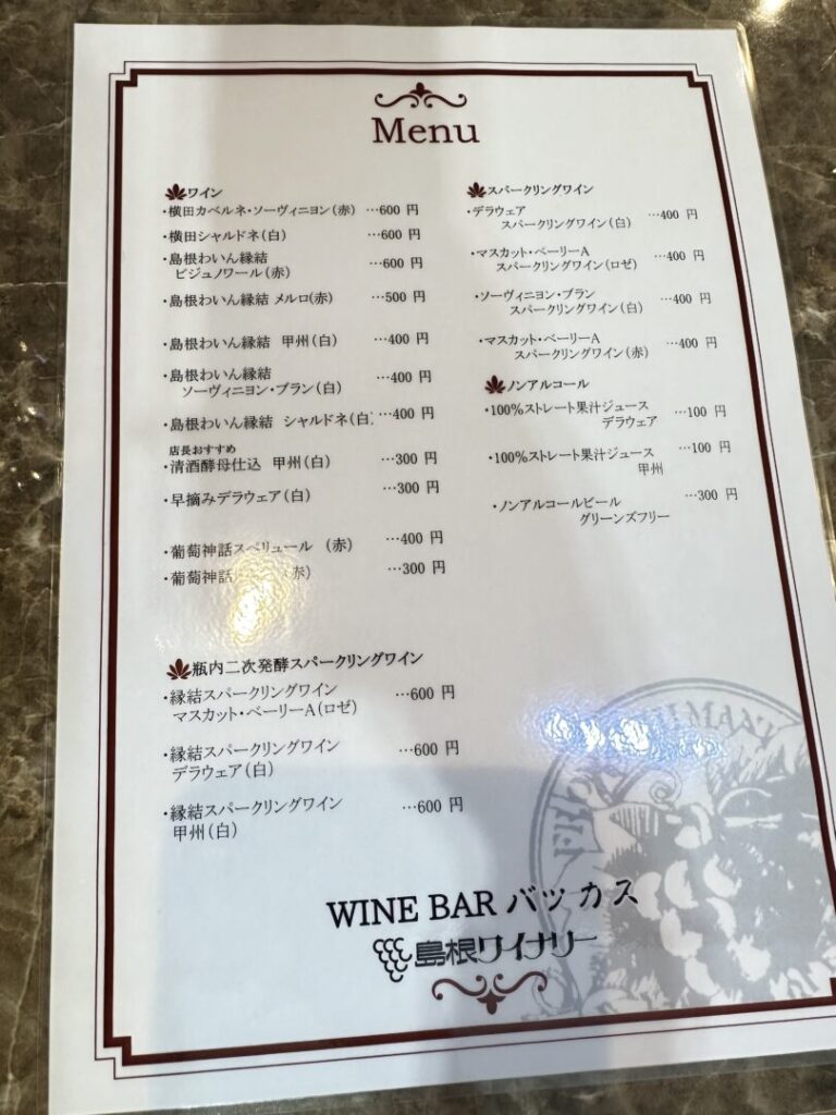 メニューはこんな感じ。
