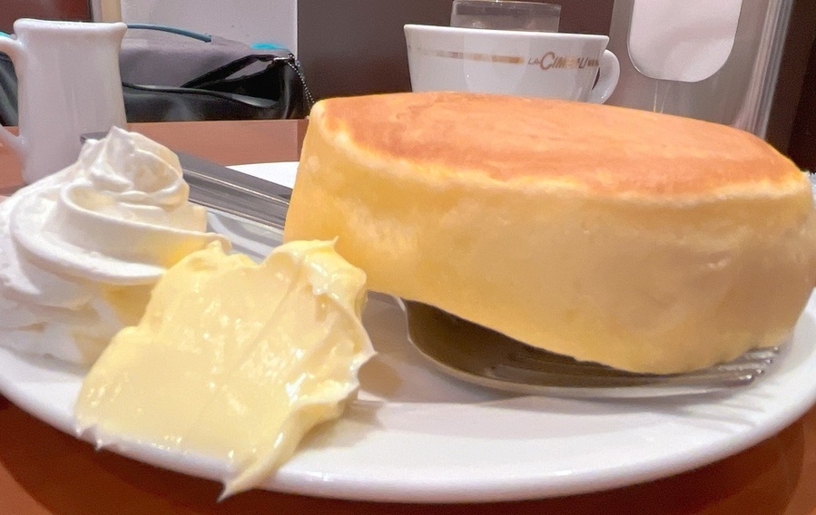 これはデザートで頼んだ「絞り立て抹茶モンブランパンケーキ」で、パンケーキ自体はすごくふわふわ食感でモンブラン部分はしっかりと抹茶の味がしました(*,,•ᴗ•,,)