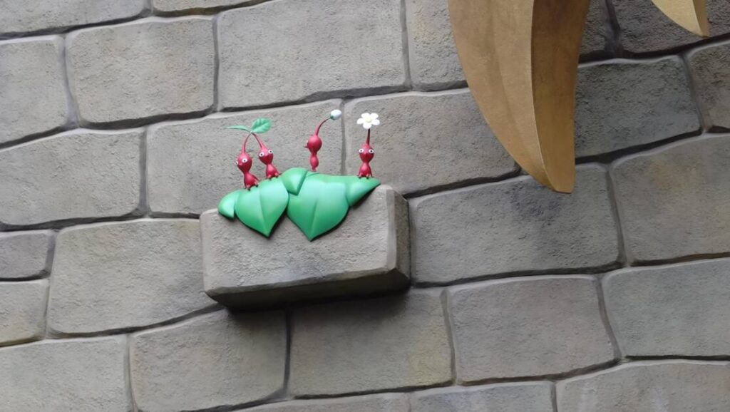 このエリアではマリオが主だったのですが、エリアの片隅にピクミンがいてました(´∀`*)ほかの遊園地でいう隠れ〇ッキー的な要素なのかなと思いつつ、かわいくてついつい探してしまいました。